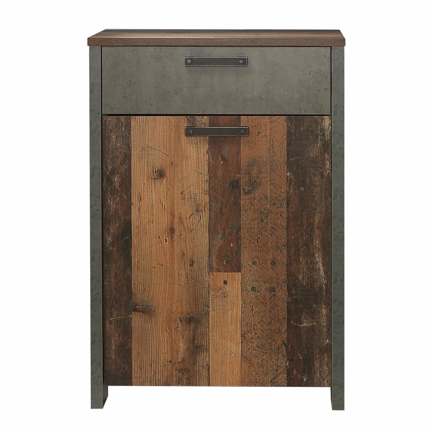 Dieses 3-teilige Garderobenset präsentiert sich in Old Wood Vontage Nachbildung mit Absetzung in Betonoptik. Diese Farbkombination ist typisch für den Industrial Style und verleiht Ihrem Eingangsbereich einen rauen Charme. Im Set enthalten sind ein Schuhschrank, ein Kleiderpaneel und ein Spiegel. So können Sie im Eingangsbereich für Ordnung sorgen und Schuhe sowie jacken ordnungsgemäß verstauen und aufbügeln.