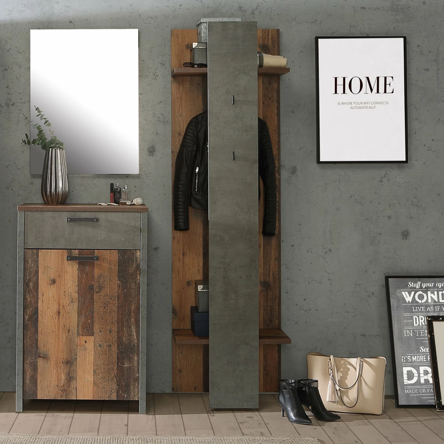 3-teiliges Garderoben-Set – Old Wood Vintage – Betonoptik