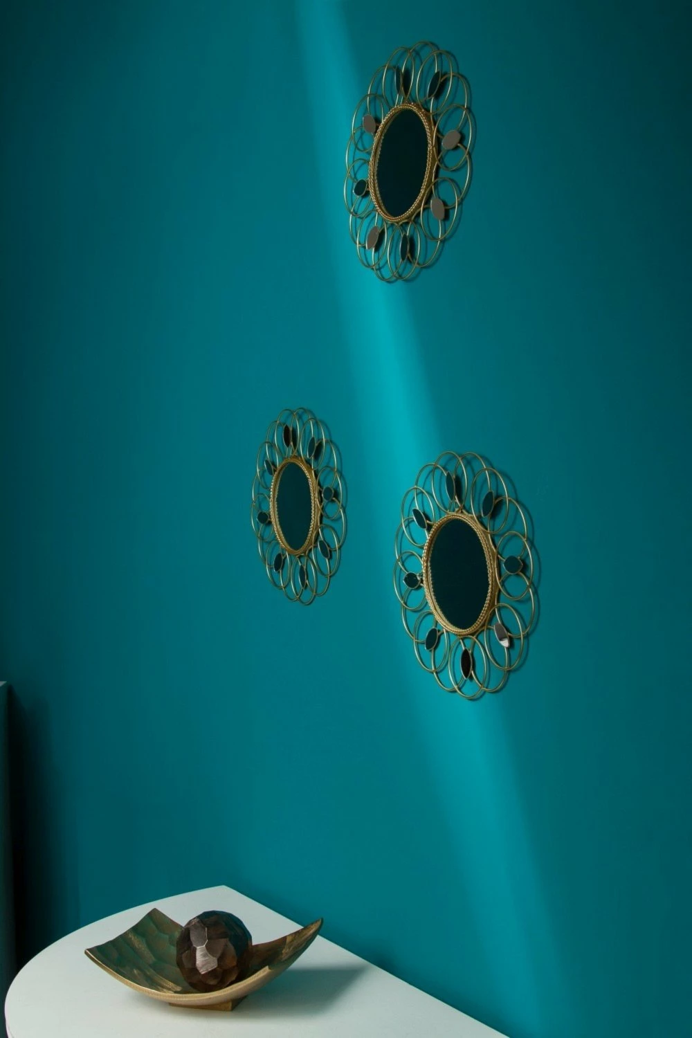 3er-Set Wandspiegel ANTIGUA – goldfarben – Metall