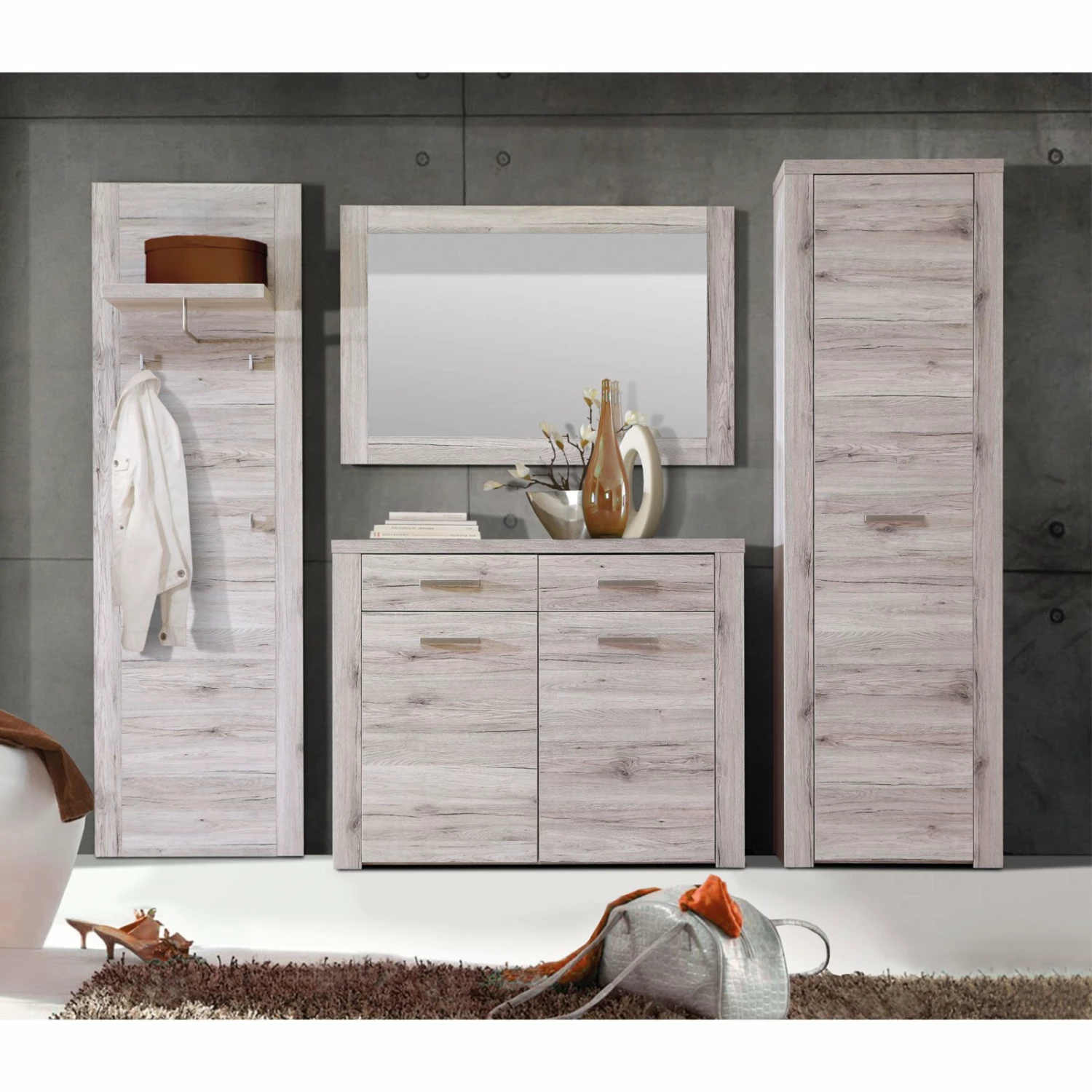 4-teiliges Garderoben-Set – Sandeiche