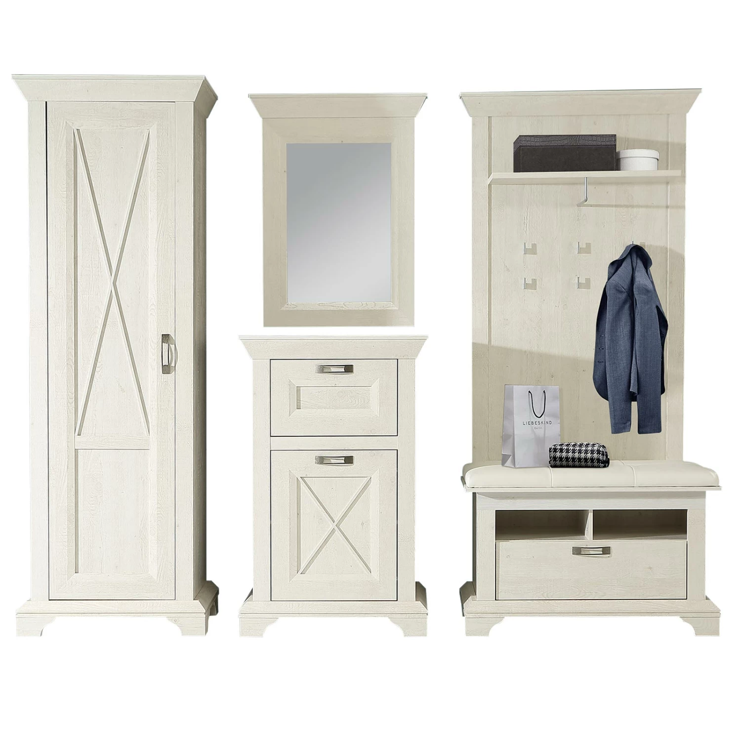 5-teiliges Garderoben-Set – Pinie weiß Nachbildung