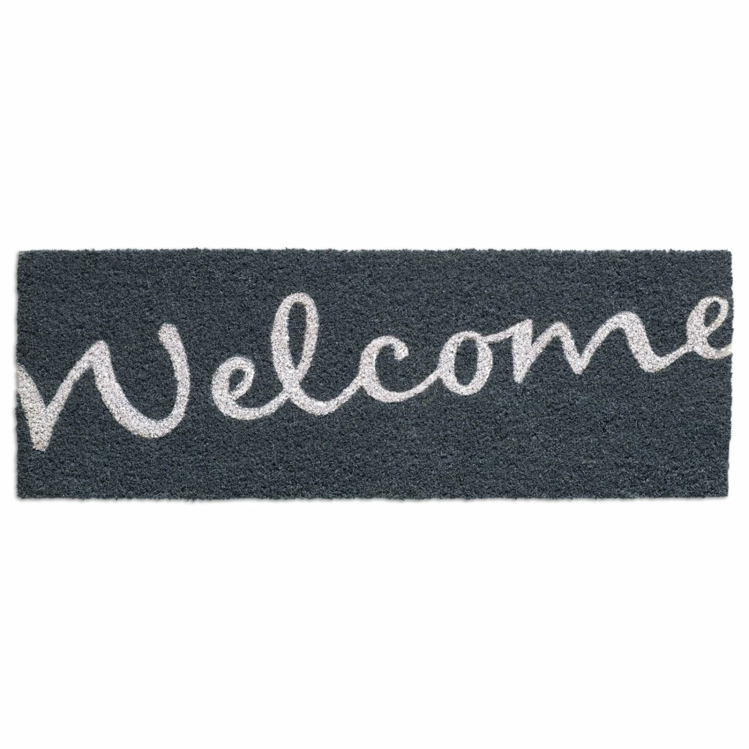 Schmutzschluckend und rutschfest ist diese Fußmatte aus Kokosfasern. Mit einem geschwungenen Welcome Schriftzug begrüßt sie Ihre Gäste und sorgt für Sauberkeit in Ihrer Wohnung. Dank der schmalen Maße ist die Matte sehr gut für kleine Flure oder Treppenstufen geeignet.