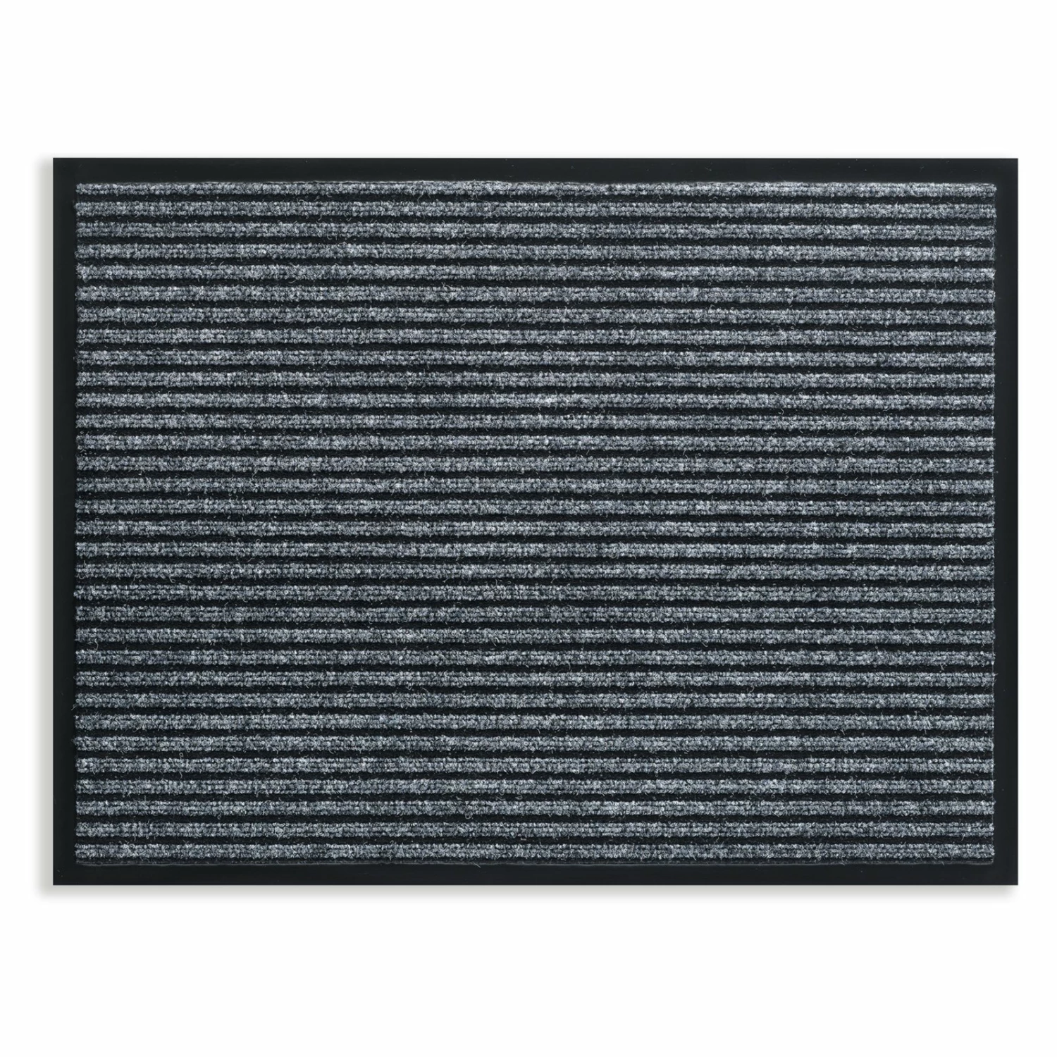 Fußmatte in grau mit Gummirand und -unterseite. Die Matte hat ein schlichtes und zeitloses Design und das Gummi verhindert verrutschen bei Bewegung.