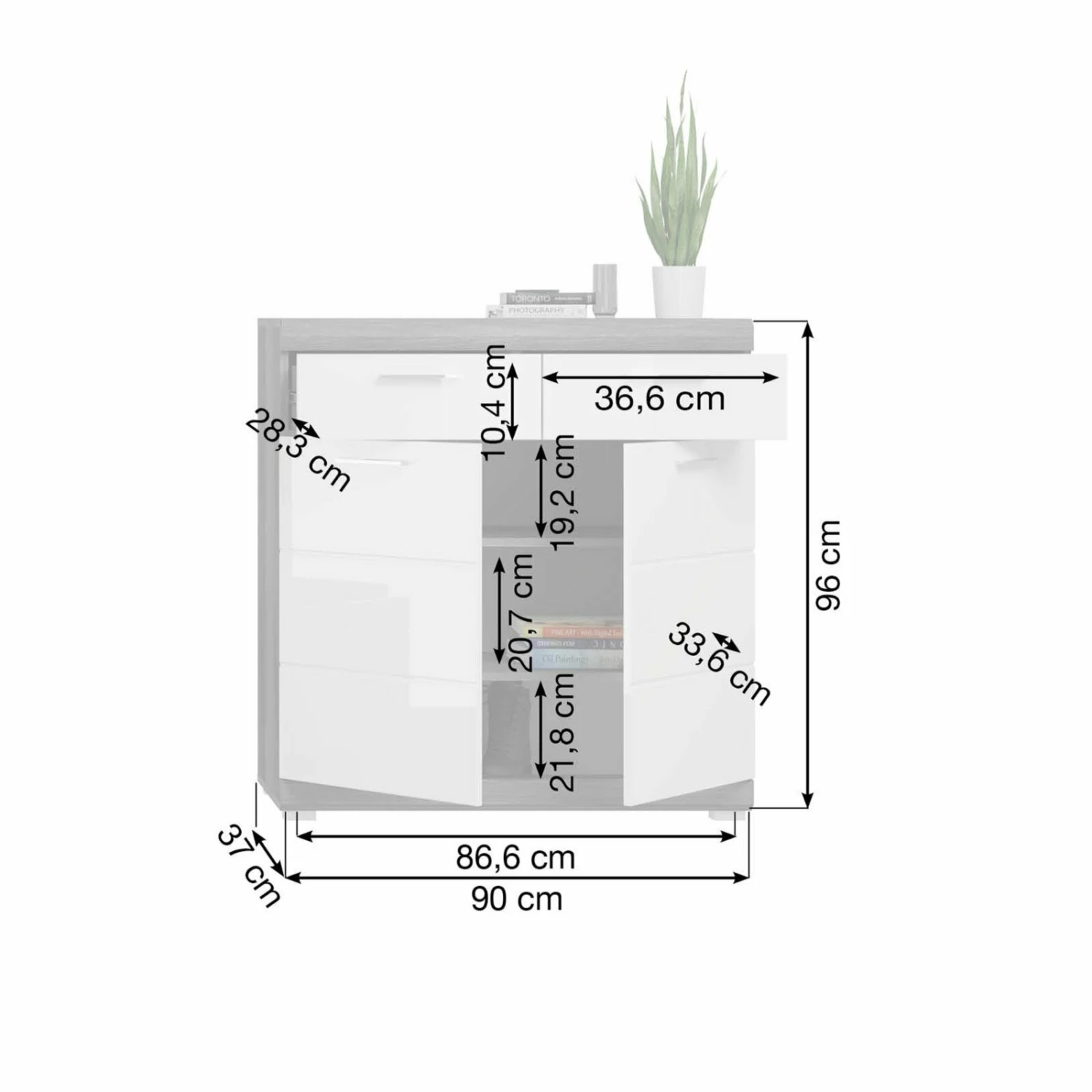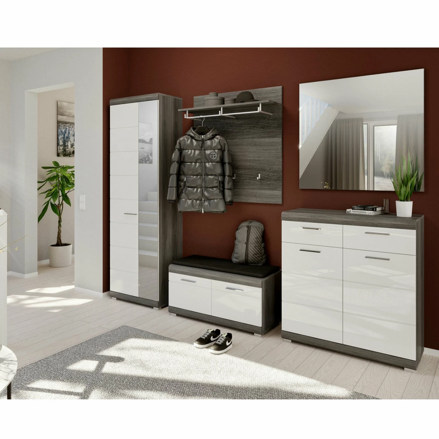 Garderobenkommode SCOUT – Rauchsilber – weiß Hochglanz – 90 cm