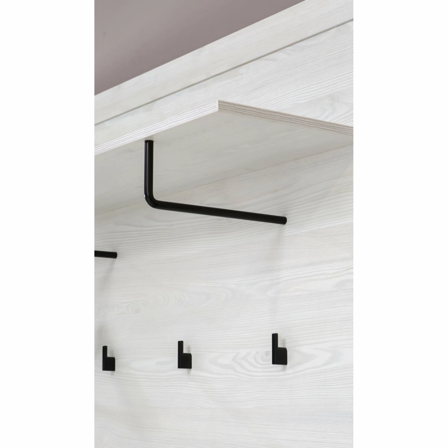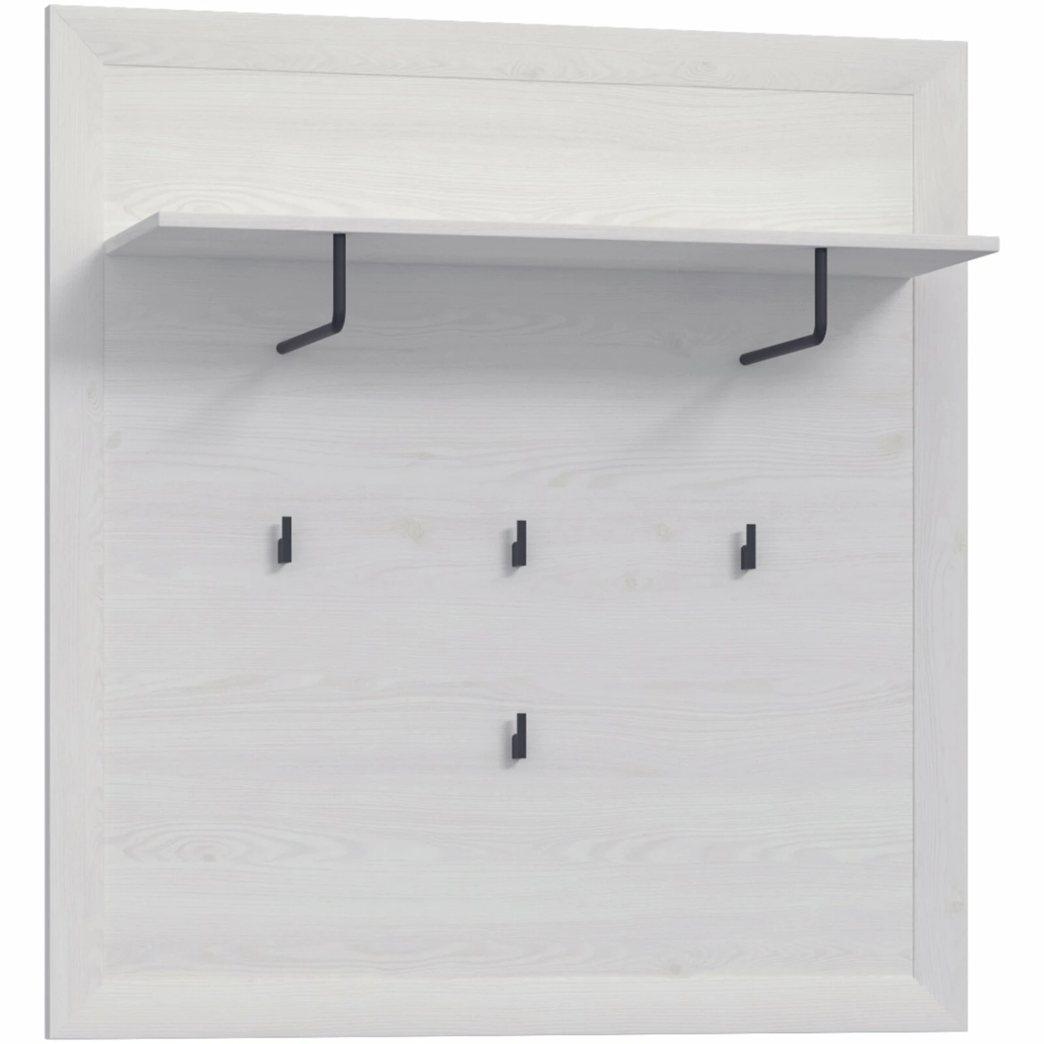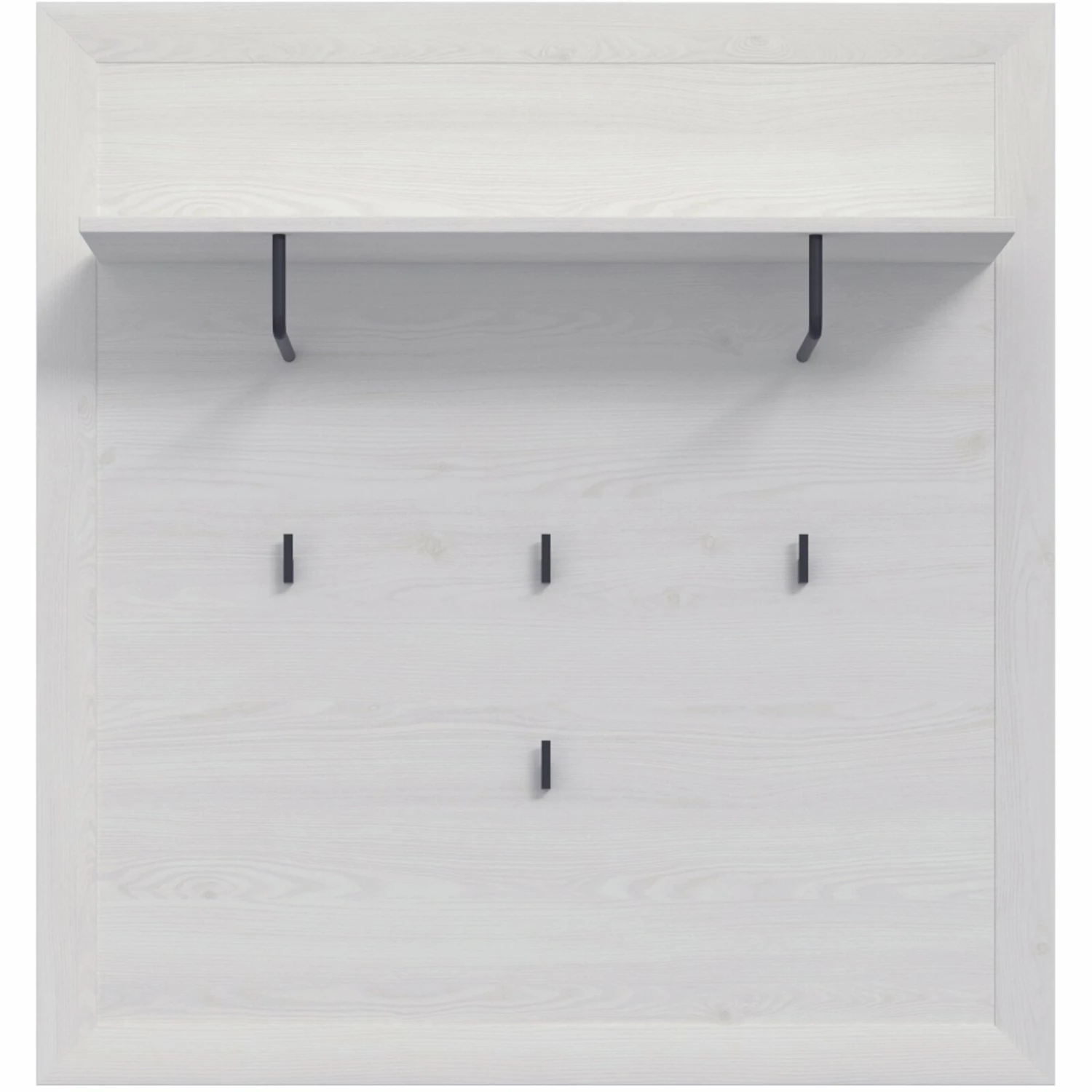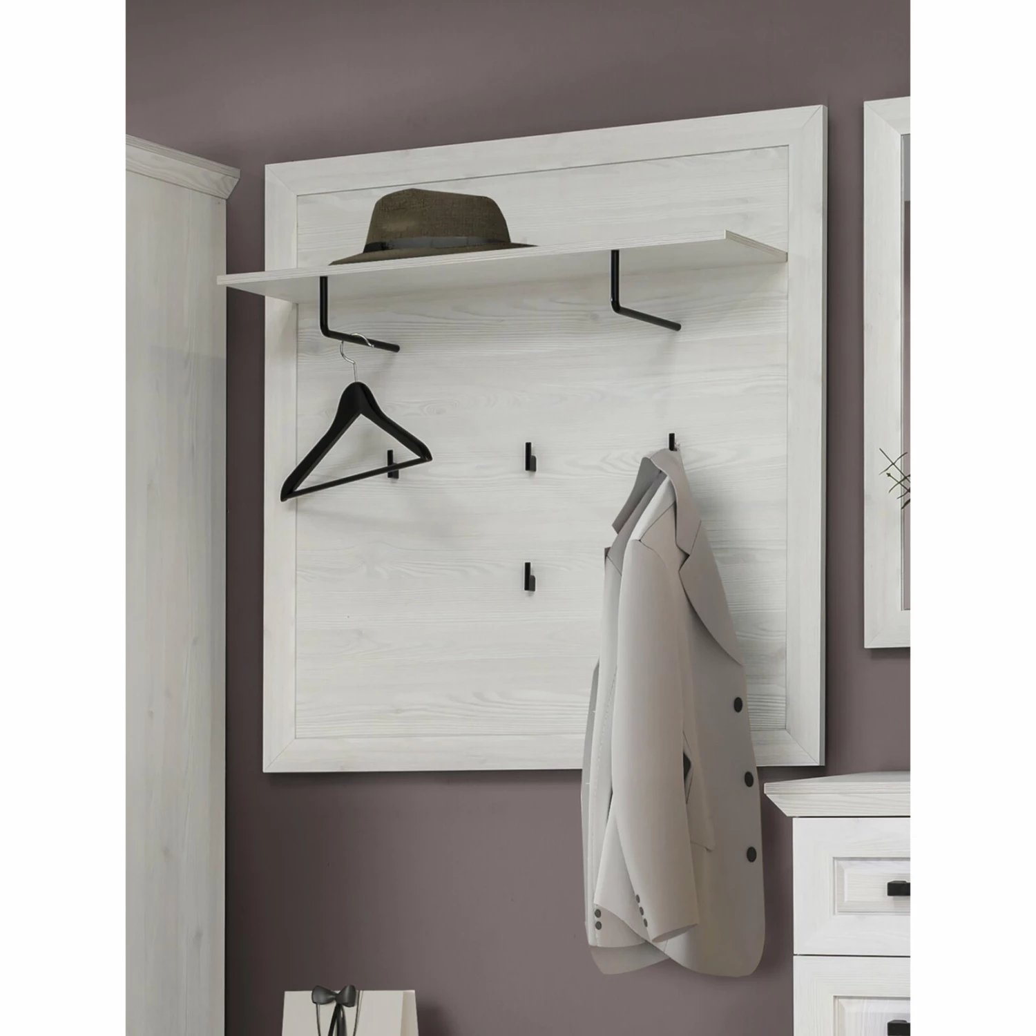 Mit dem Design im modernen Landhausstil fügt sich das Garderobenpaneel platzsparend in Ihren Eingangsbereich ein. Es ist in Sibiu Lärche-Nachbildung gehalten und überzeugt durch das Rahmendesign. Die Wandgarderobe ist mit einer Hutablage, zwei Kleiderstangen und vier versetzt angeordneten Haken ausgestattet und bietet somit viele Ablagemöglickeiten. Alle Applikationen sind aus Metall in Schwarz gehalten. Damit stellen sie einen dekorativen Kontrast zum hellen Holz her. Die Hängegarderobe lässt sich beliebig mit anderen Möbeln kombinieren und bietet Ihnen viel Platz für oft genutzte Mäntel, Jacken oder Accessoires. Gefertigt ist die Garderobe aus Holzwerkstoff.
