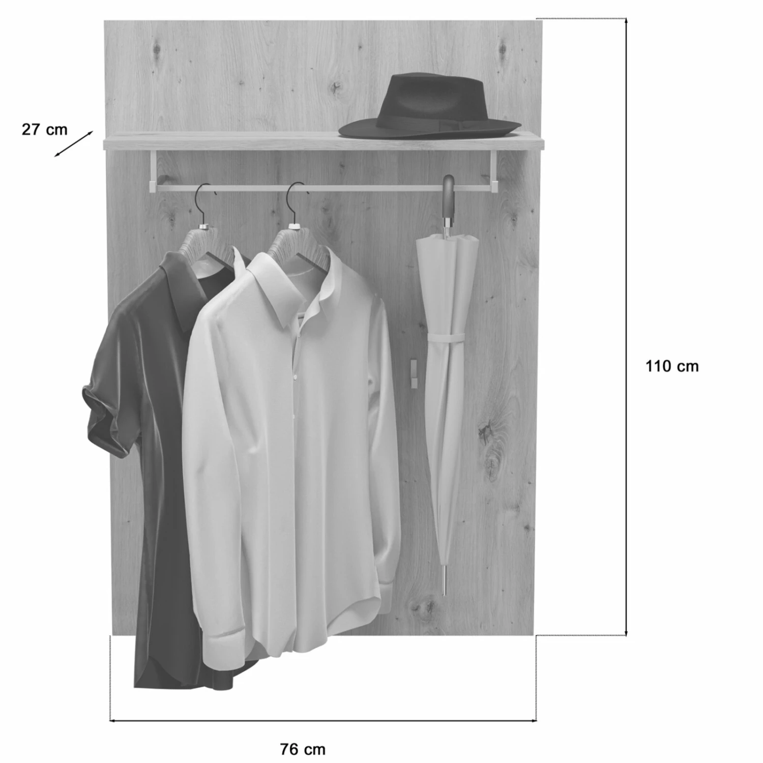 Garderobenpaneel TORINO – Eiche – mit Hutablage – 110 cm hoch