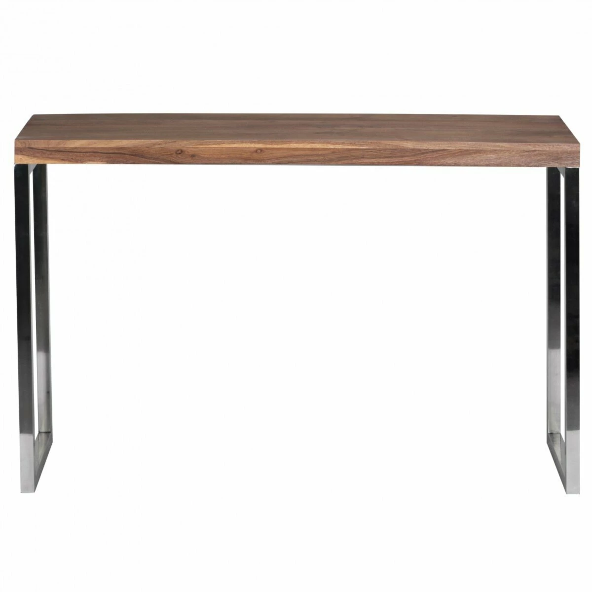 Ein großer Konsolentisch aus massivem Akazienholz in Handarbeit gefertigt. Durch die klare Lackierung bleiben die natürlichen Maserungen des Holzes sichtbar und jeder Artikel ist ein Unikat. Der rechteckige Tisch zeichnet sich durch eine schlichte Eleganz aus und ist mit einem Chromgestell ausgestattet.