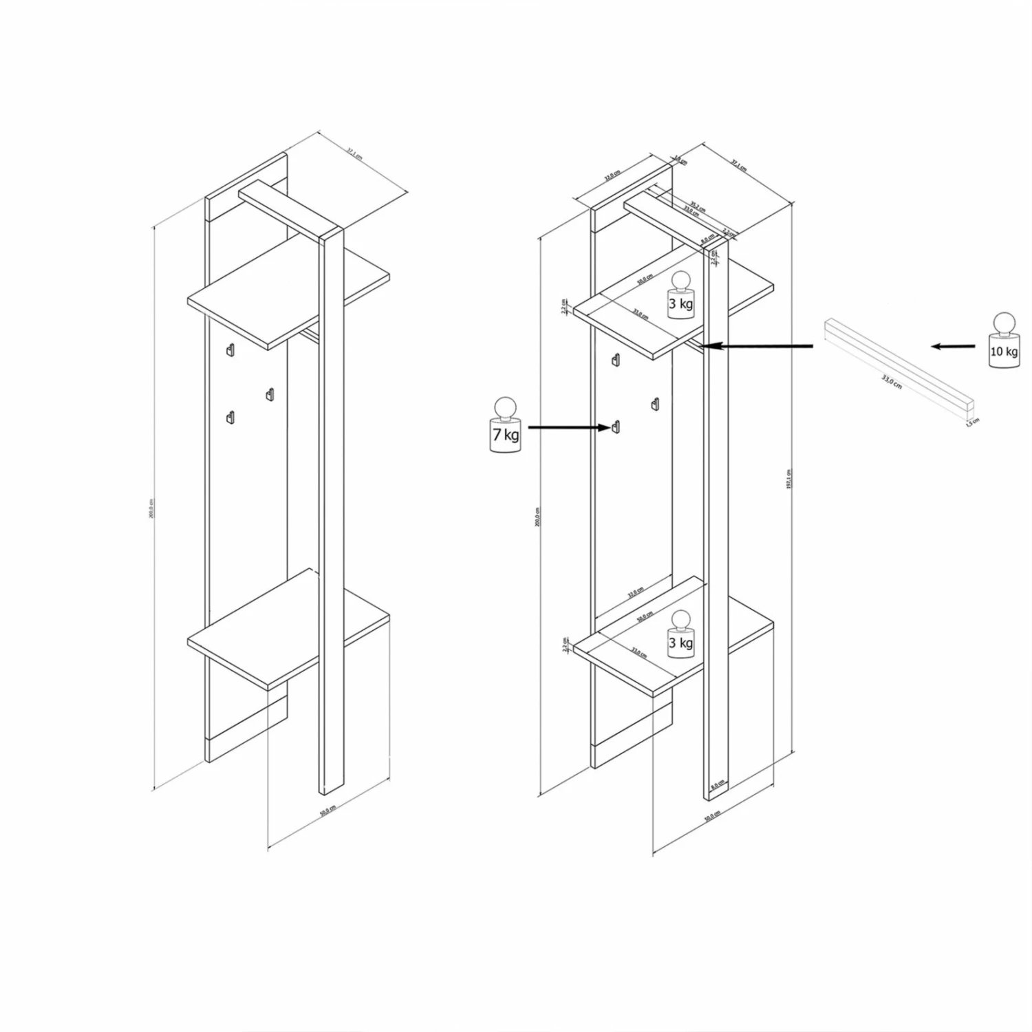 - Belastbarkeit je Kleiderstangen: ca. 10 kg