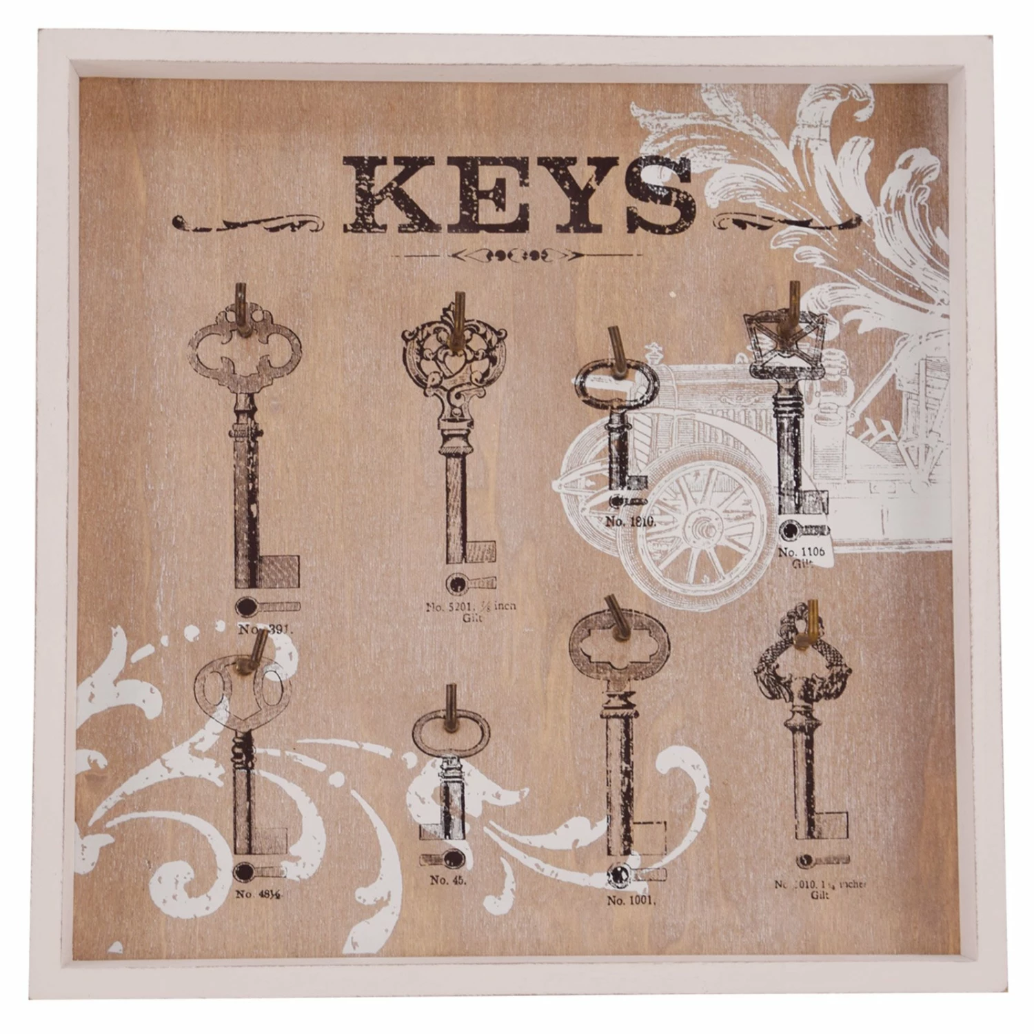 Dieses Schlüsselbrett aus Holz ist ein echter Hingucker. Es ist dekorativ und bringt Ordnung ins Haus. An dem Schlüsselbrett können Sie bis zu acht Schlüssel aufhängen.