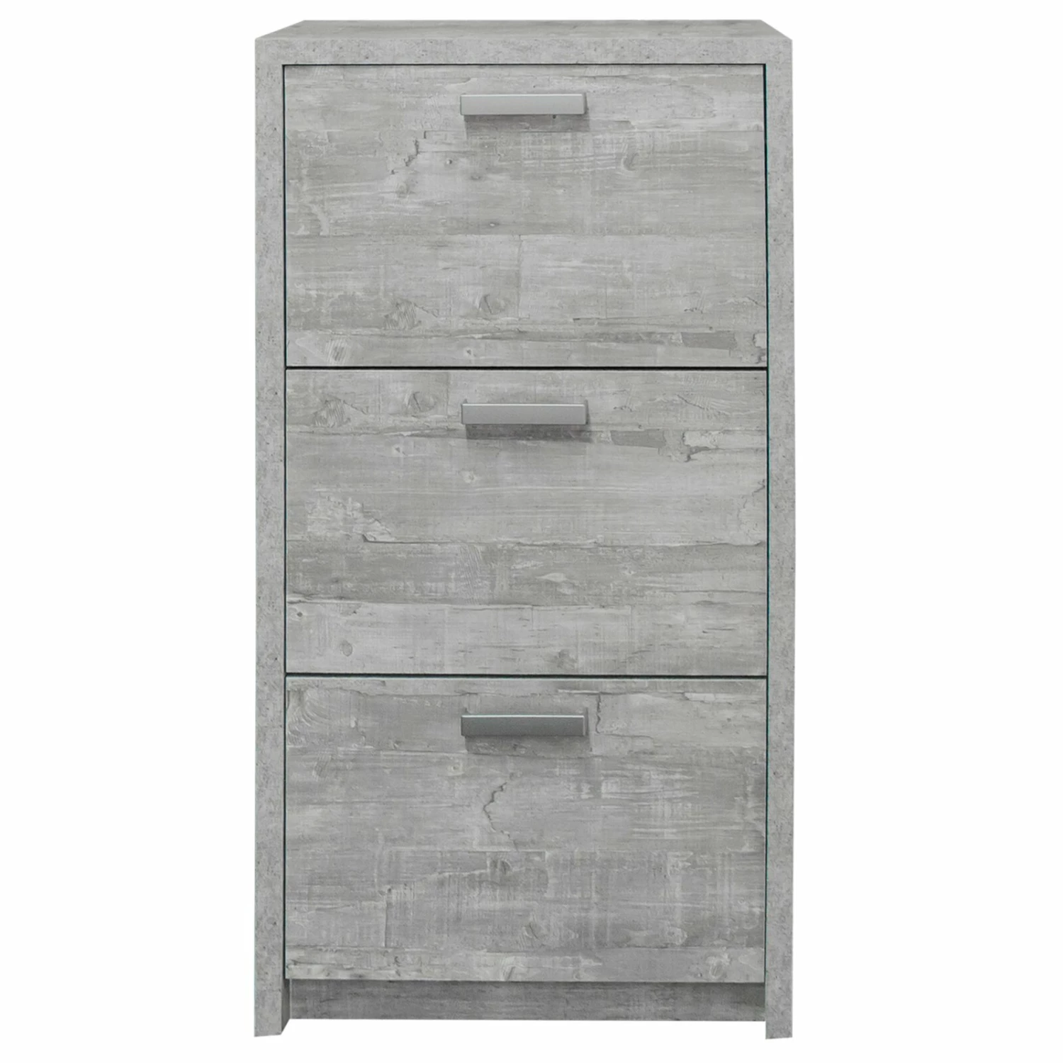 Der Schuhkipper in Betonoptik bietet in drei Klappen reichlich Platz für Ihre Schuhpaare und hat zudem ein topmodernes Erscheinungsbild.