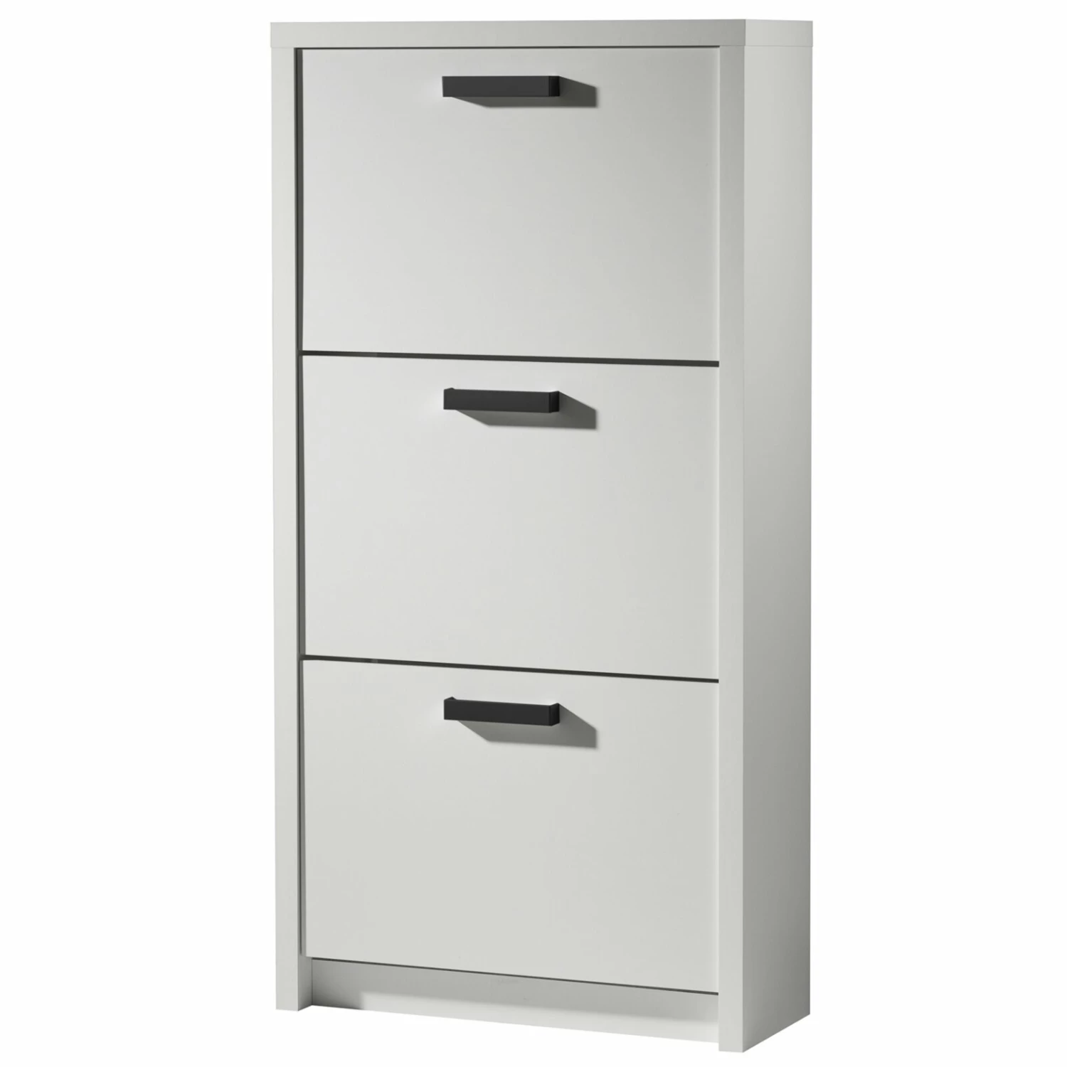 Der Schuhkipper in einem matten Weiß bietet in drei Klappen reichlich Platz für Ihre Schuhpaare und hat zudem ein topmodernes Erscheinungsbild.