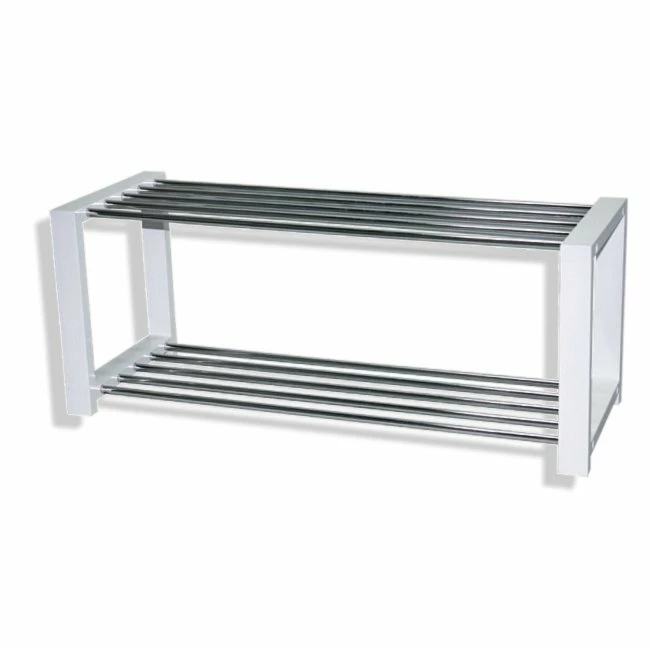 Stabiles Schuhregal in modernem Design mit verchromten Röhren