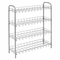 Leichtes Schuhregal aus Metall mit 4 Etagen, bietet Platz für ca. 12 Paar Schuhe.