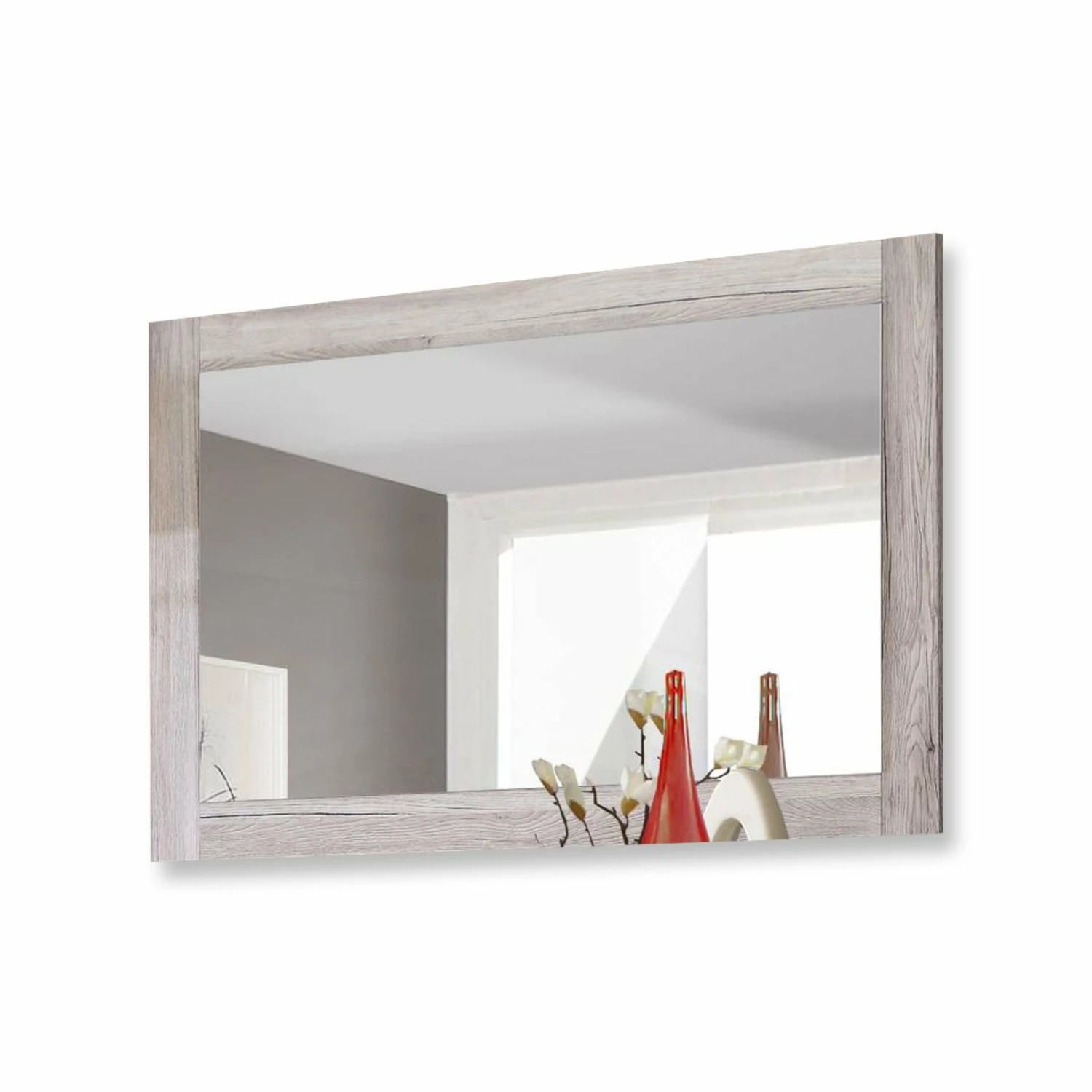 Dieser dekorative Spiegel ist die perfekte Ergänzung für Ihre Dielengarderobe. Die große Spiegelfläche wird gefasst von einem attraktiven Rahmen in Sandeiche Optik.