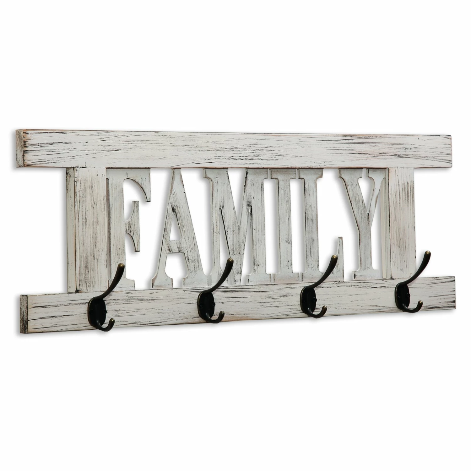 Für kleinere Eingangsbereiche eignet sich diese Wandgarderobe in Vintageweiß geradezu perfekt, denn sie nimmt kaum Platz ein. Die verwischte Optik und die messingfarbenen Metall-Haken verleihen diesem Wohnaccessoire das gewisse Etwas.
