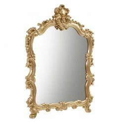 Dieser Wandspiegel mit einem dicken goldenen Rahmen passt ideal in Ihr Schlafzimmer. Der Rahmen aus Kunststoff weist edle Verzierungen auf, die den Spiegel zu einem echten Hingucker machen. Trotz der Verzierungen ist der Spiegel besonders pflegeleicht, sodass Sie sich keine Sorgen um die goldene Farbe machen müssen.